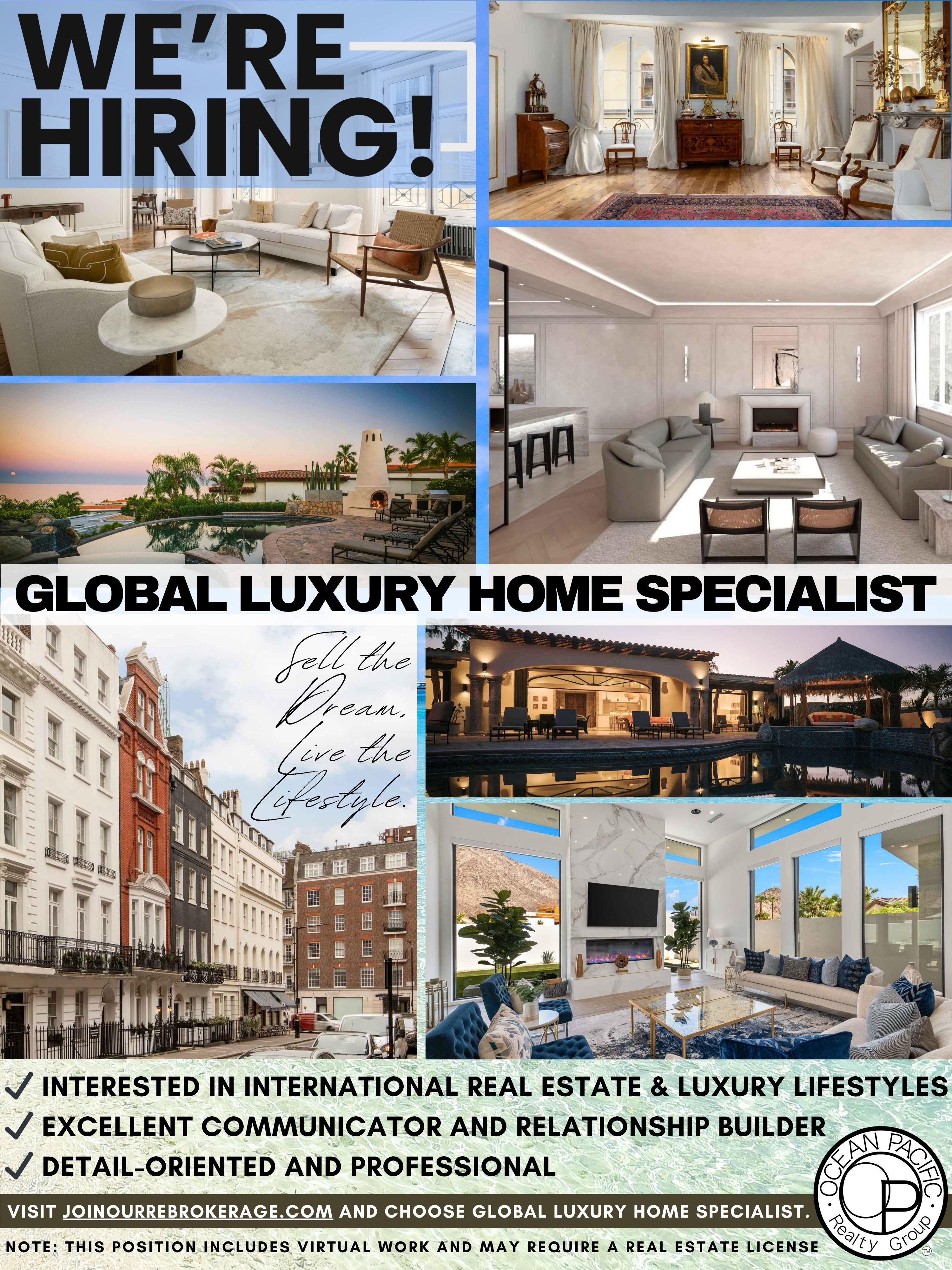 Our team is looking for a Team Member who has a skill and interest in the commercial real estate market. We are looking for that star candidate to assist our business owner clients move from current leases into owner occupied properties as well as identify solid commercial purchases for our seasoned Individual and Corporate Investors. - Global Luxury Home Specialist